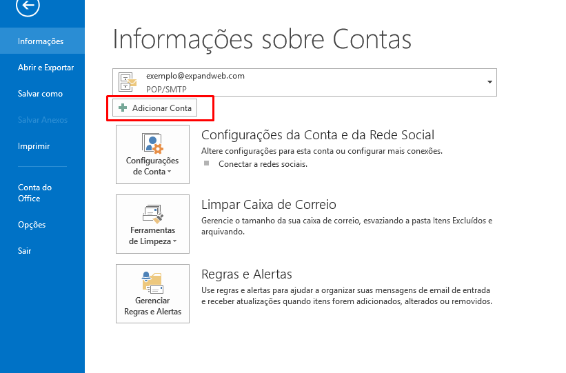 1. Abra o Outlook e selecione Arquivo > Adicionar Conta.