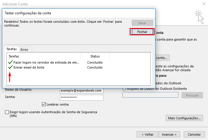 7. Feito isso, clique em Avançar, Fechar e Concluir.